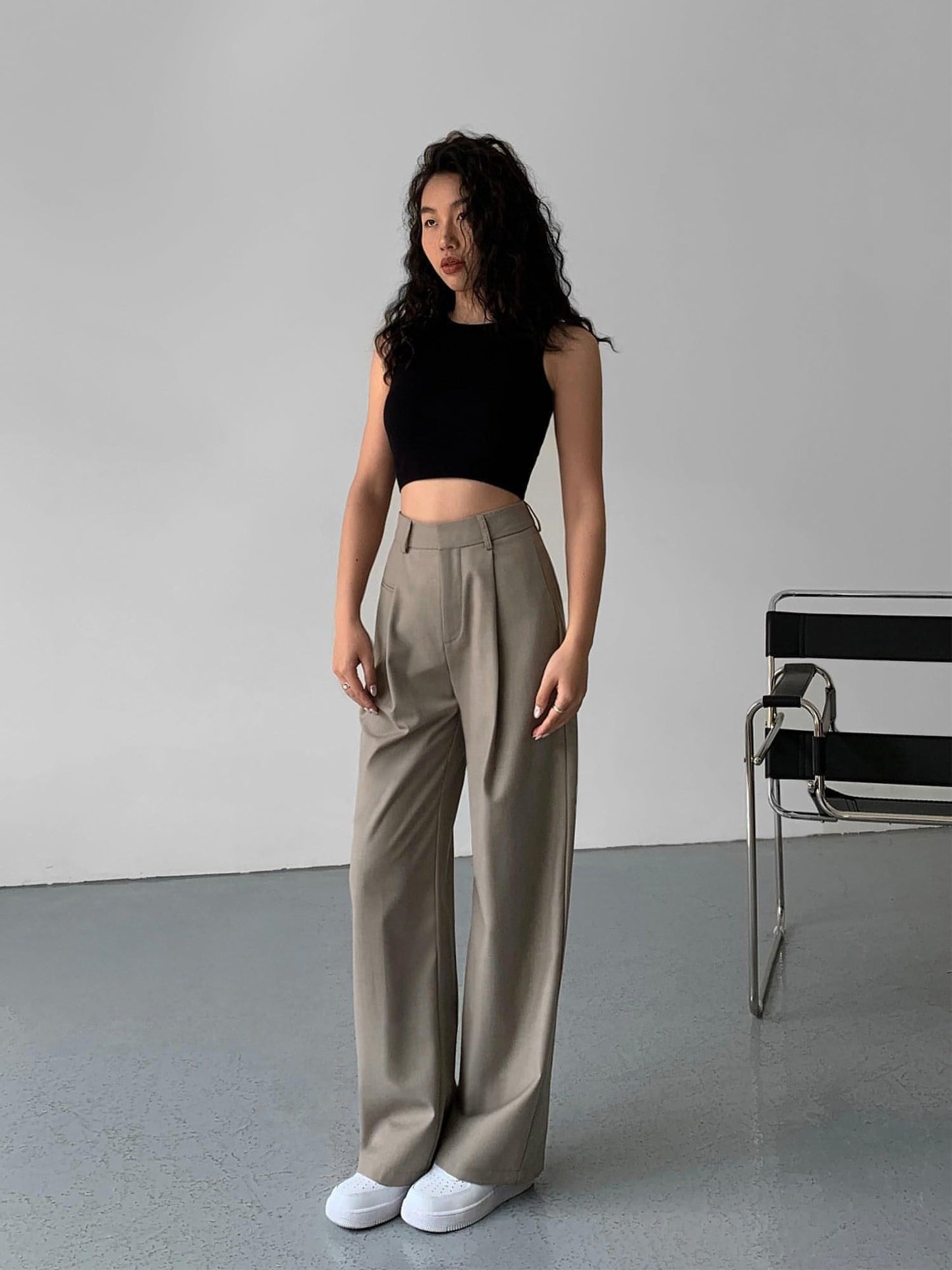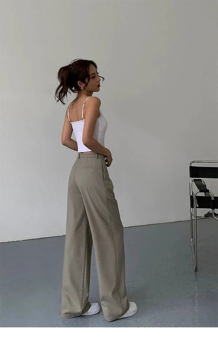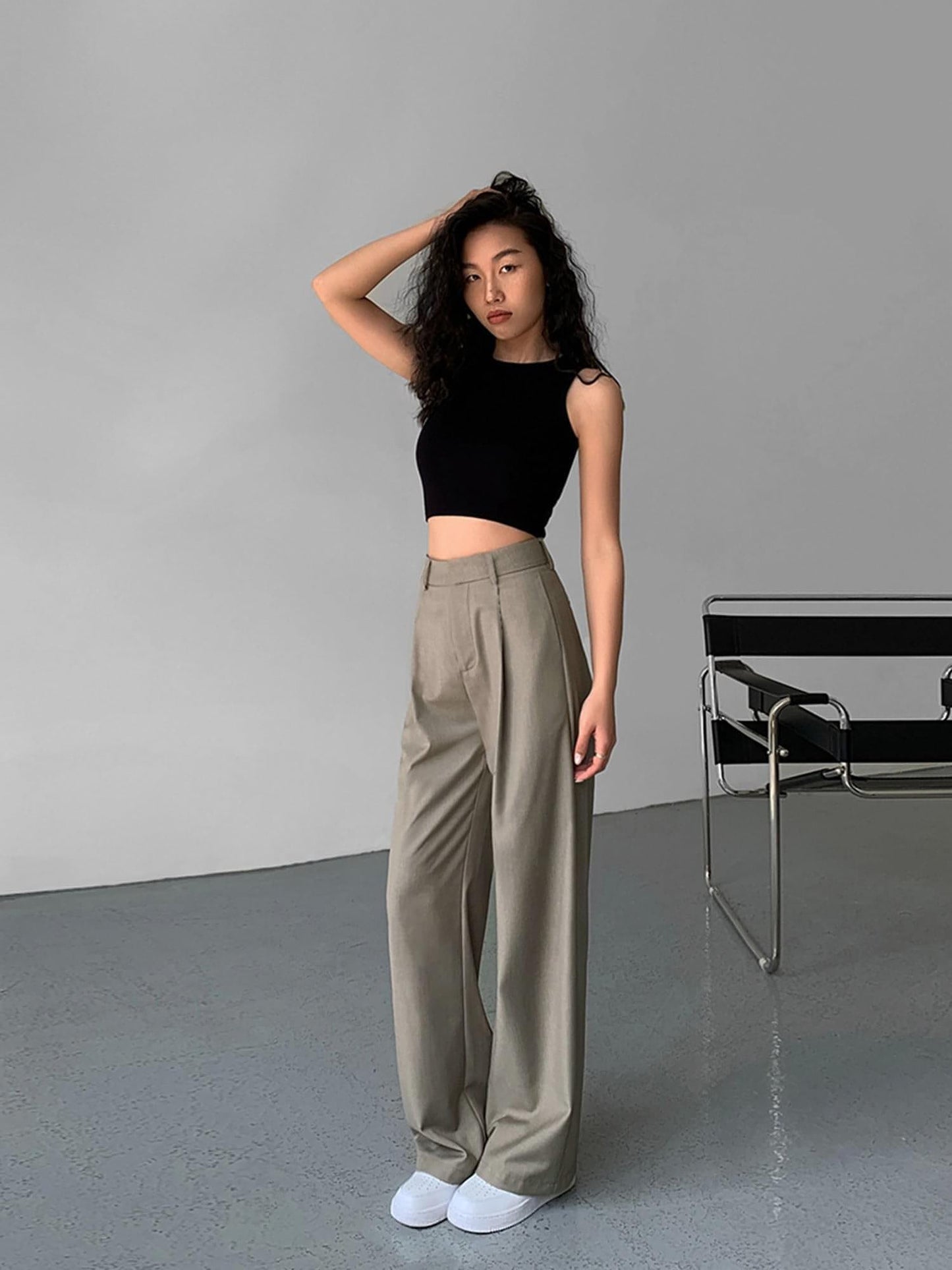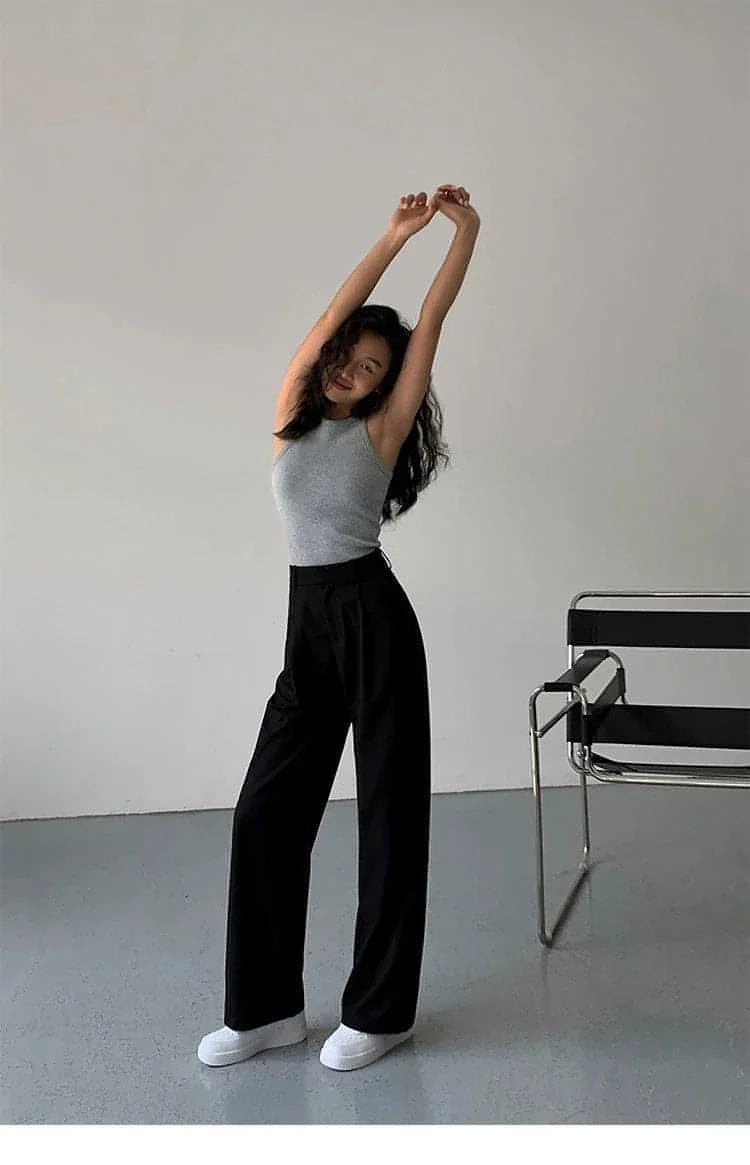 Discover our Black Drapey Wide-Leg Suit Trousers from the 2024 Summer Collection. The trousers offer a loose. straight-leg cut that drapes beautifully. perfect for casual wear. Their floor-length design adds an element of sophisticated style. Comfort and elegance come together in this versatile piece.