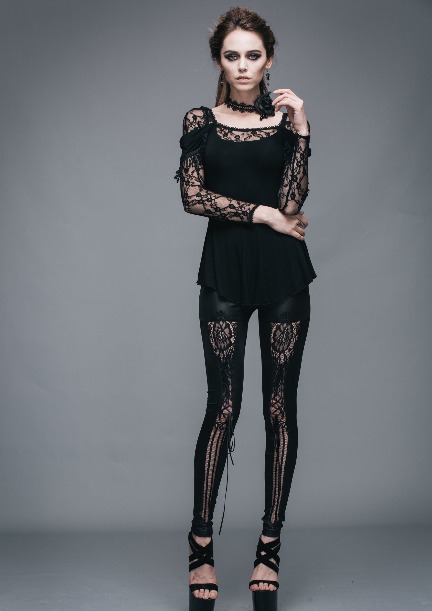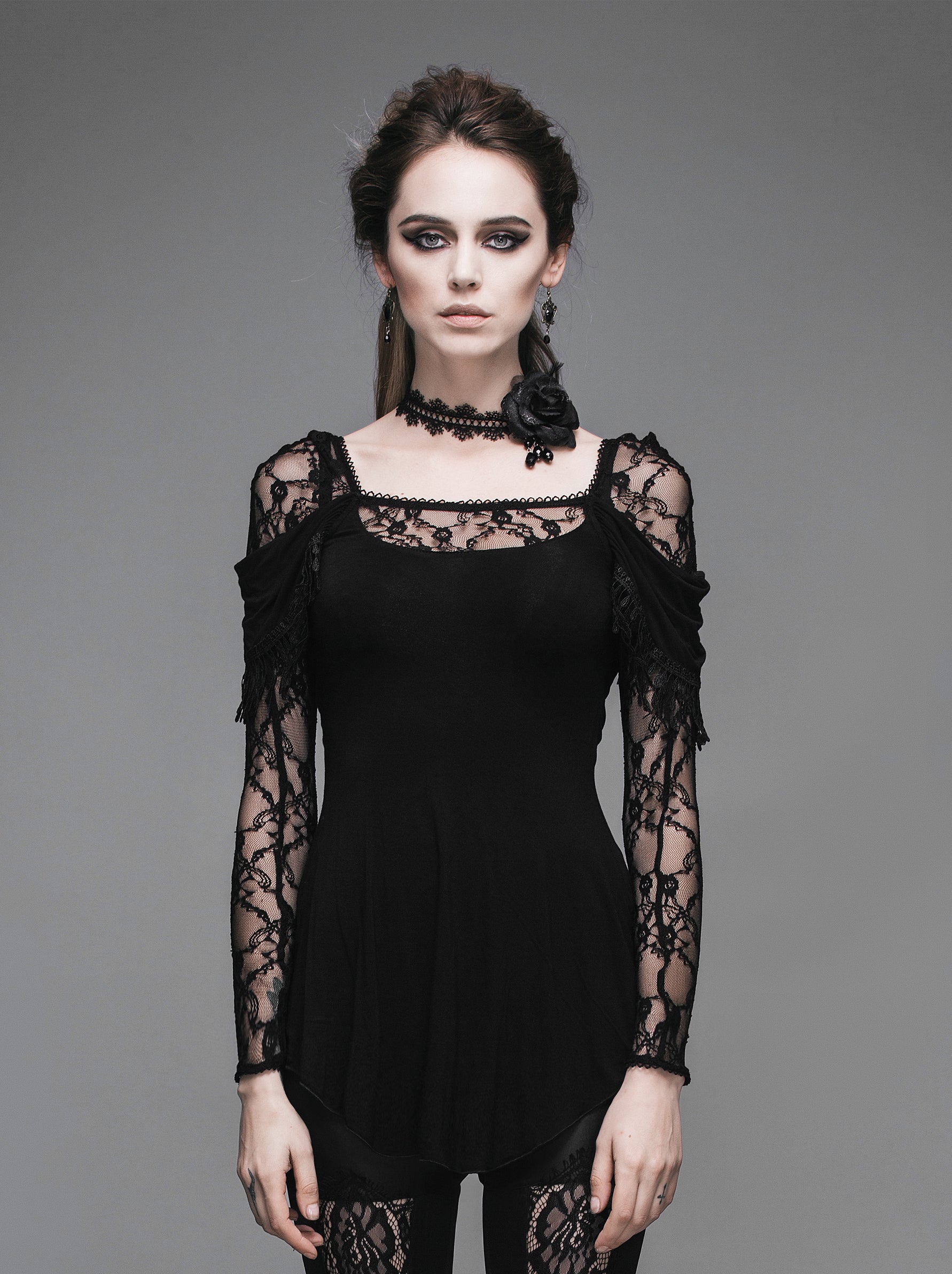 A gorgeous. feminine blouse with sheer lace sleeves and a flattering long tunic style. The rose-infused lace pattern continues over the shoulders and covers the entire back panel of this stunning top.