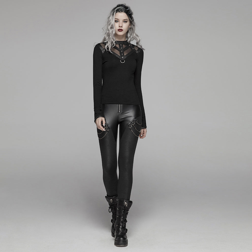 The sultriest punk rock leggings. soft faux leather and snakeskin material with three ring chains hanging from both sides.