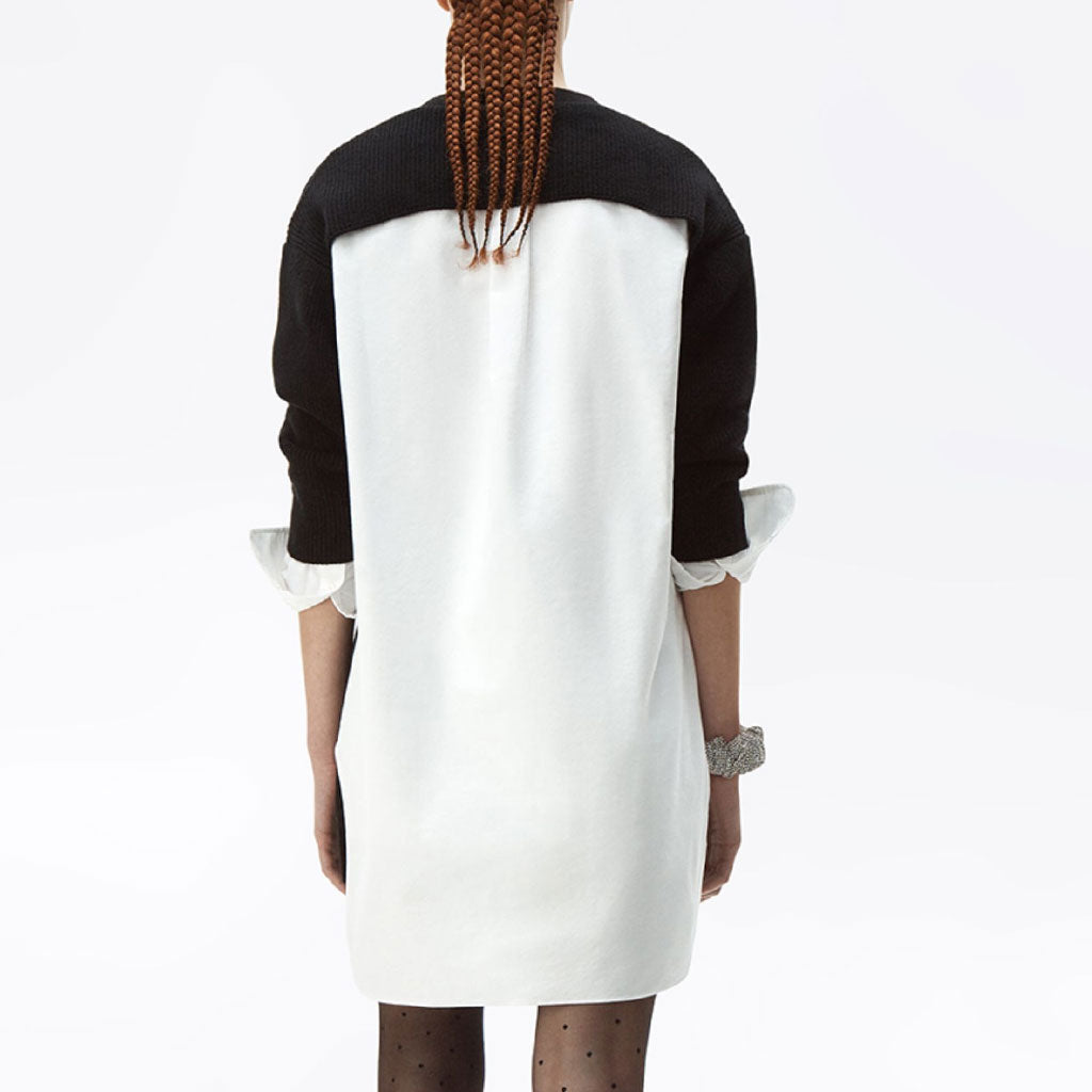 A layered design with white shirt panel. this unique knit cardigan is the perfect transition from season to season. Made from blended cotton. polyester. elastane and knit. this luxury sweater also features a plunging V neckline along with front button fastening. long sleeves with button cuffs and drop shoulders. and a relaxed silhouette with an asymmetric hem. Style it with a pair of shorts and over-knee boots for a stunning outfit. Our designer clothes collection also contains many designer cardigans for women.