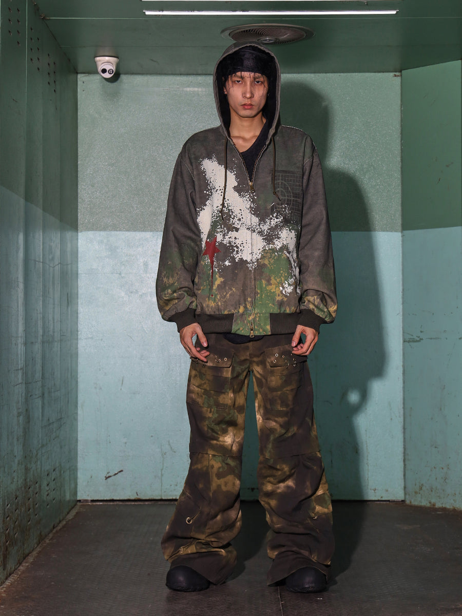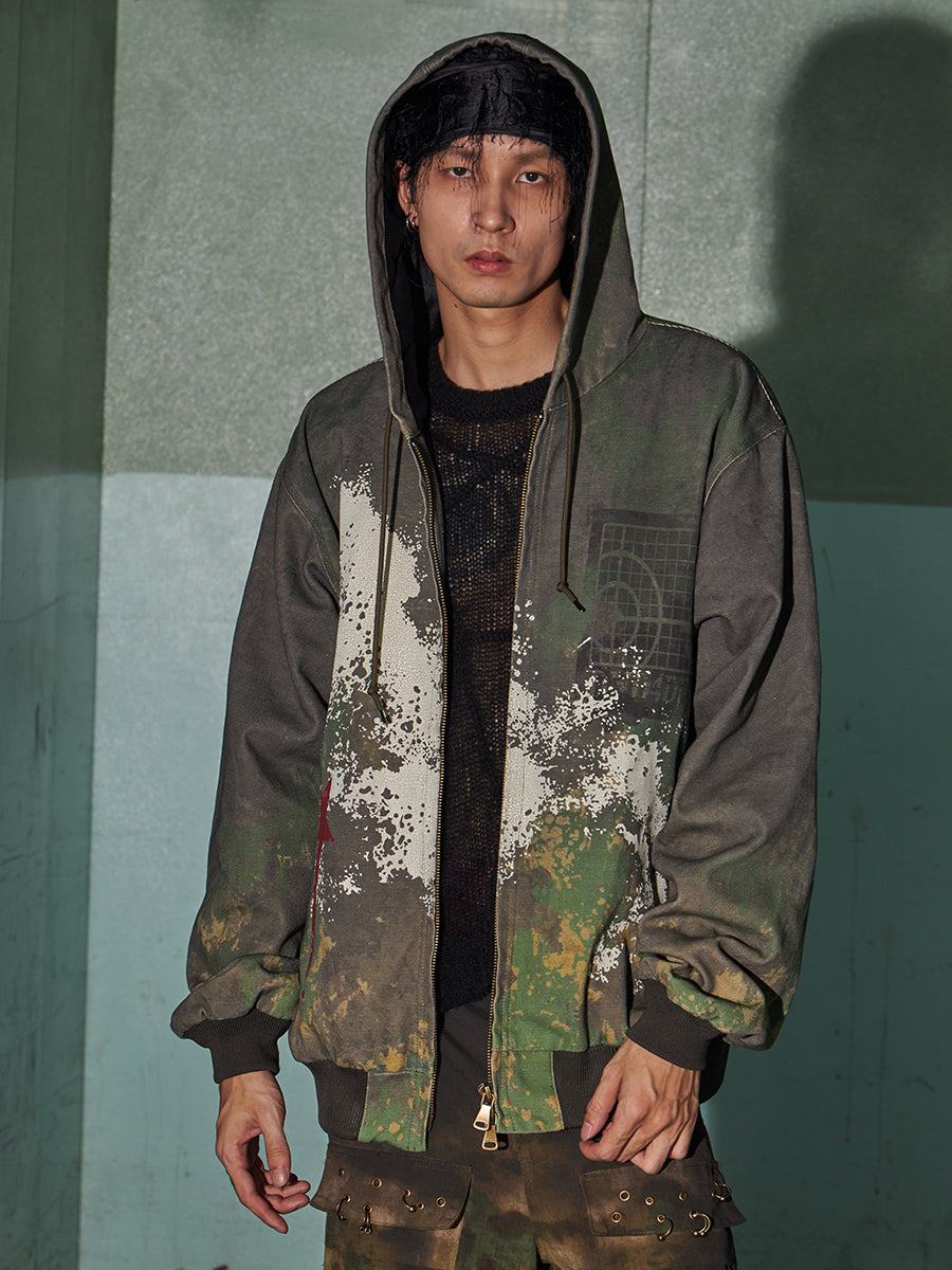 Urban Camo Splatter Hooded Bomber Jacket