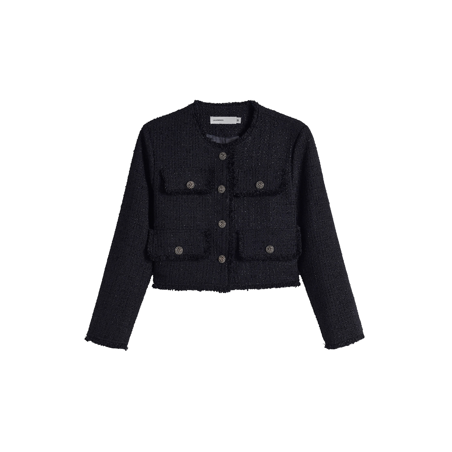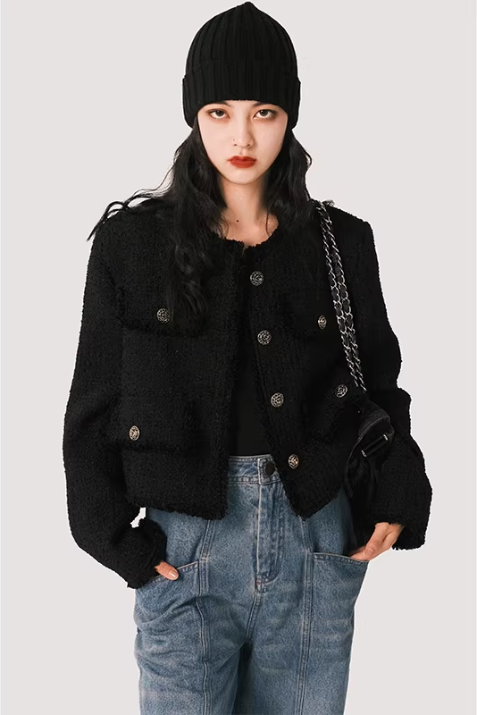 The "Urban Chic Textured Bouclé Jacket" is a statement piece that effortlessly combines style with comfort. Crafted from rich. textured bouclé fabric. this jacket features bold. decorative buttons and a relaxed fit that offers a contemporary twist to the classic blazer. Its cropped hem pairs perfectly with high-waisted denim. creating a look that's both sophisticated and street-style ready. With its versatile design. it's ideal for layering over a sleek turtleneck or a casual tee. making it a must-have for those who want to keep their wardrobe as dynamic as their lifestyle. Whether you're out for a coffee run or heading to a gallery opening. this jacket adds an edge to any ensemble.