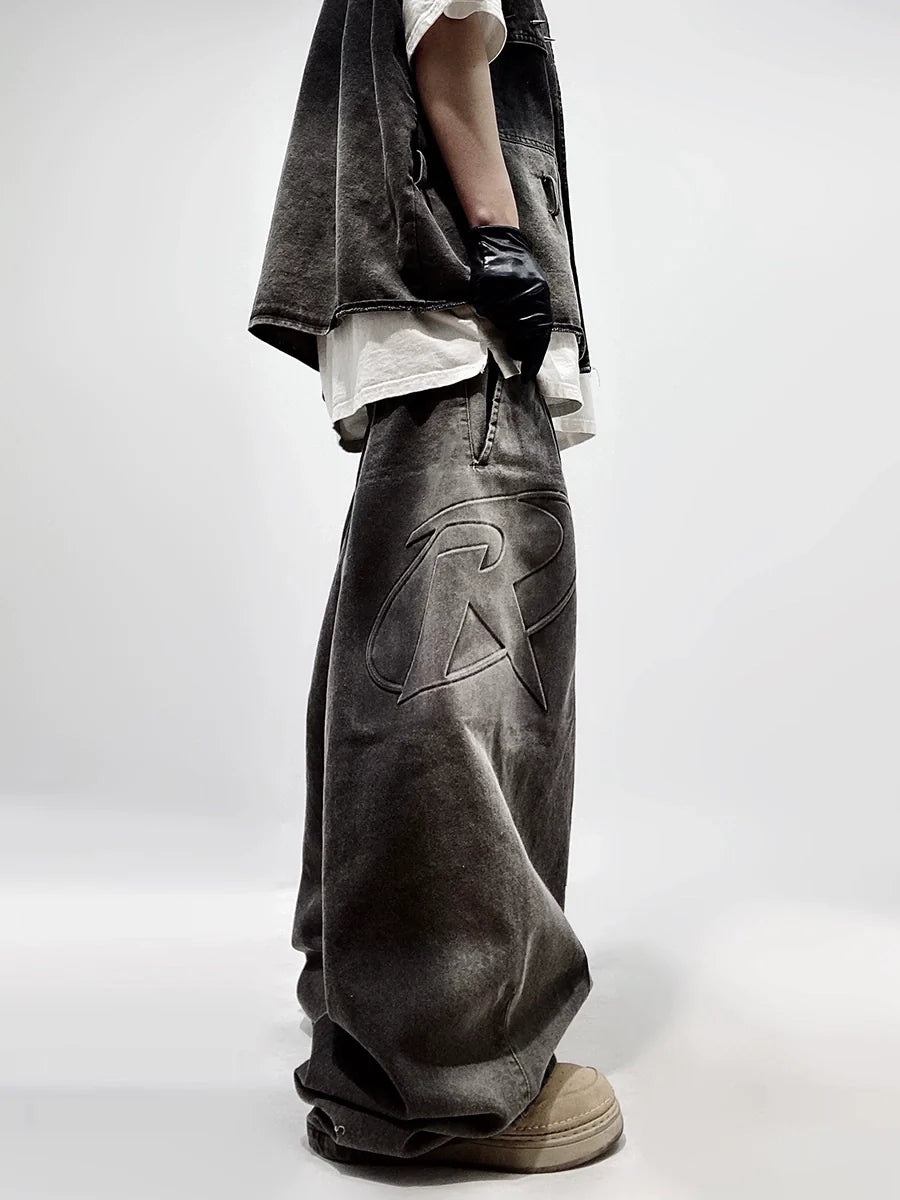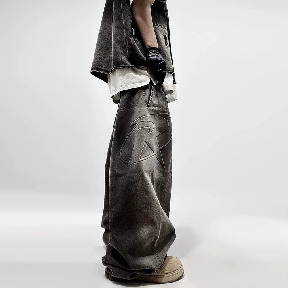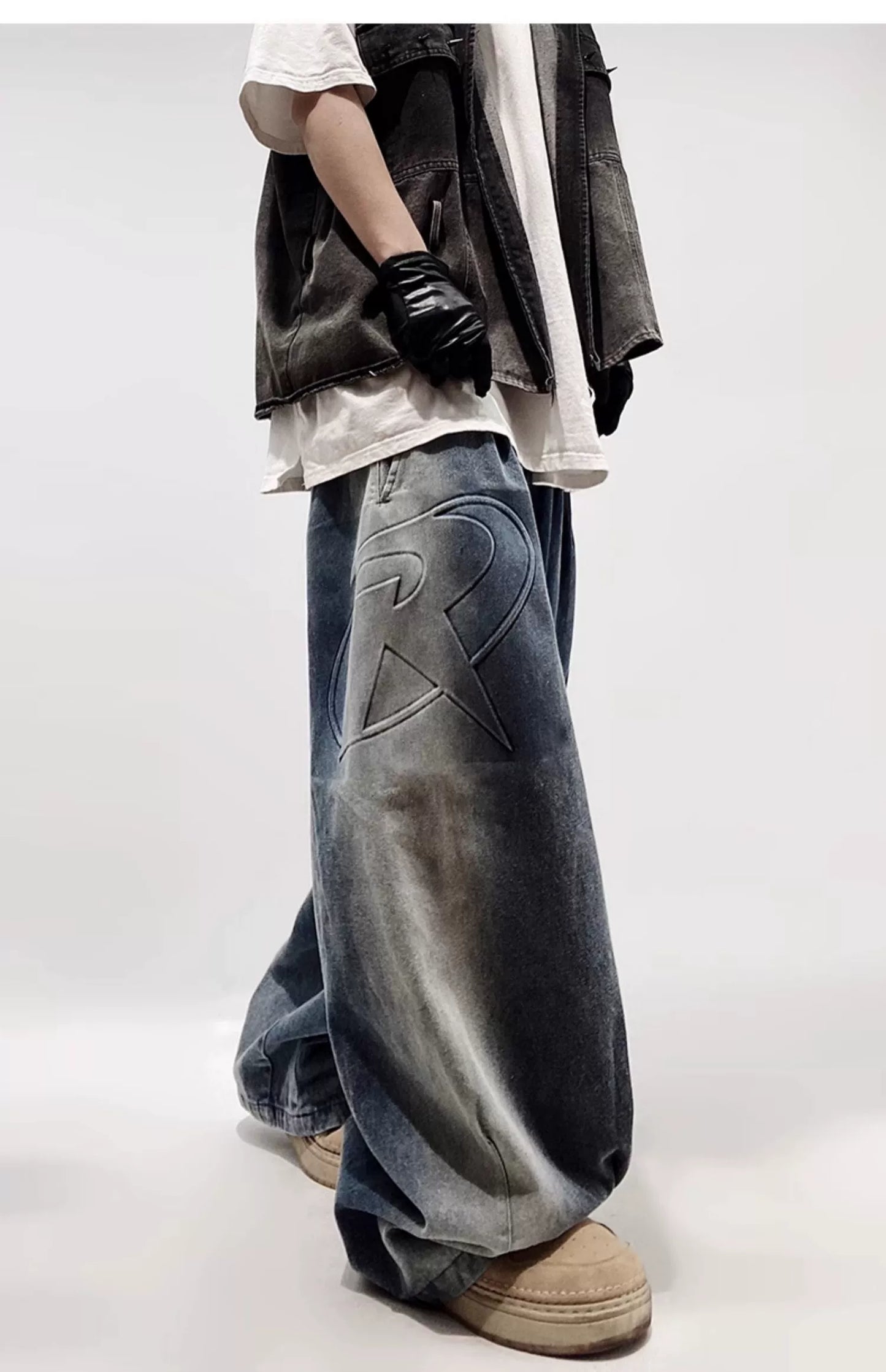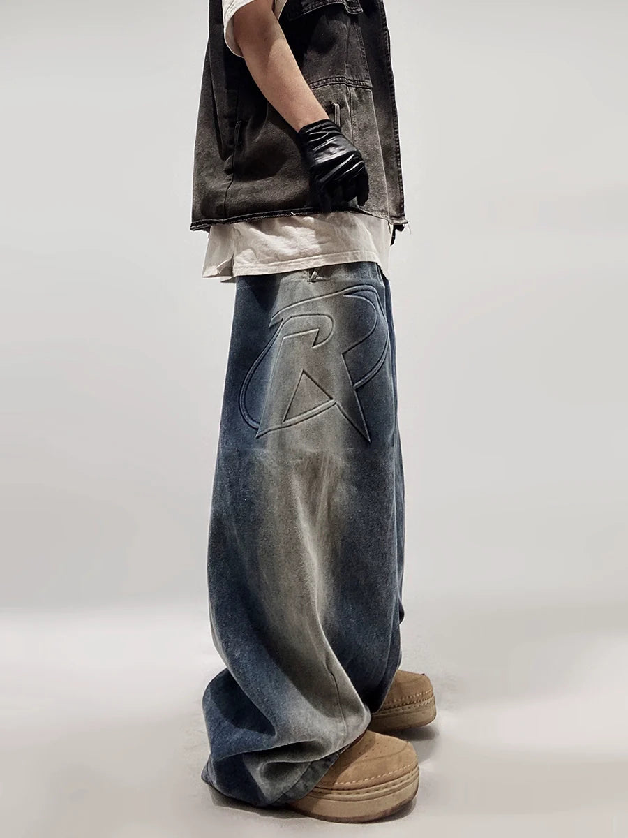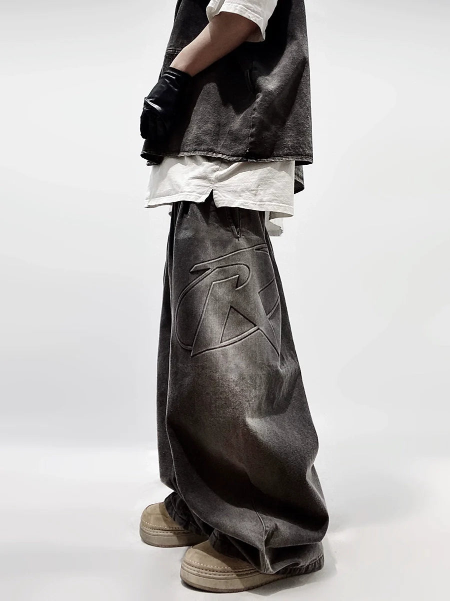 UUCSCC Urban Shadow Embossed Wide-Leg Jeans