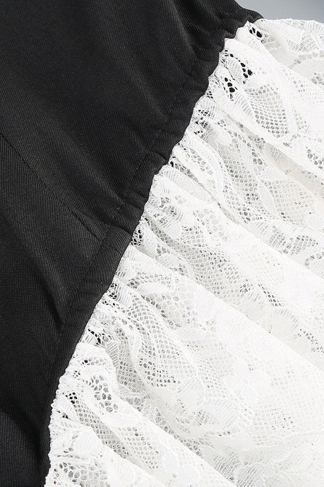 Unleash your inner fashionista with this v-neck lace-embellished jumpsuit blazer. Perfect for any occasion. this versatile piece combines the sophistication of a blazer with the comfort of a jumpsuit. Stand out in style (and comfort) with this unique and chic outfit.