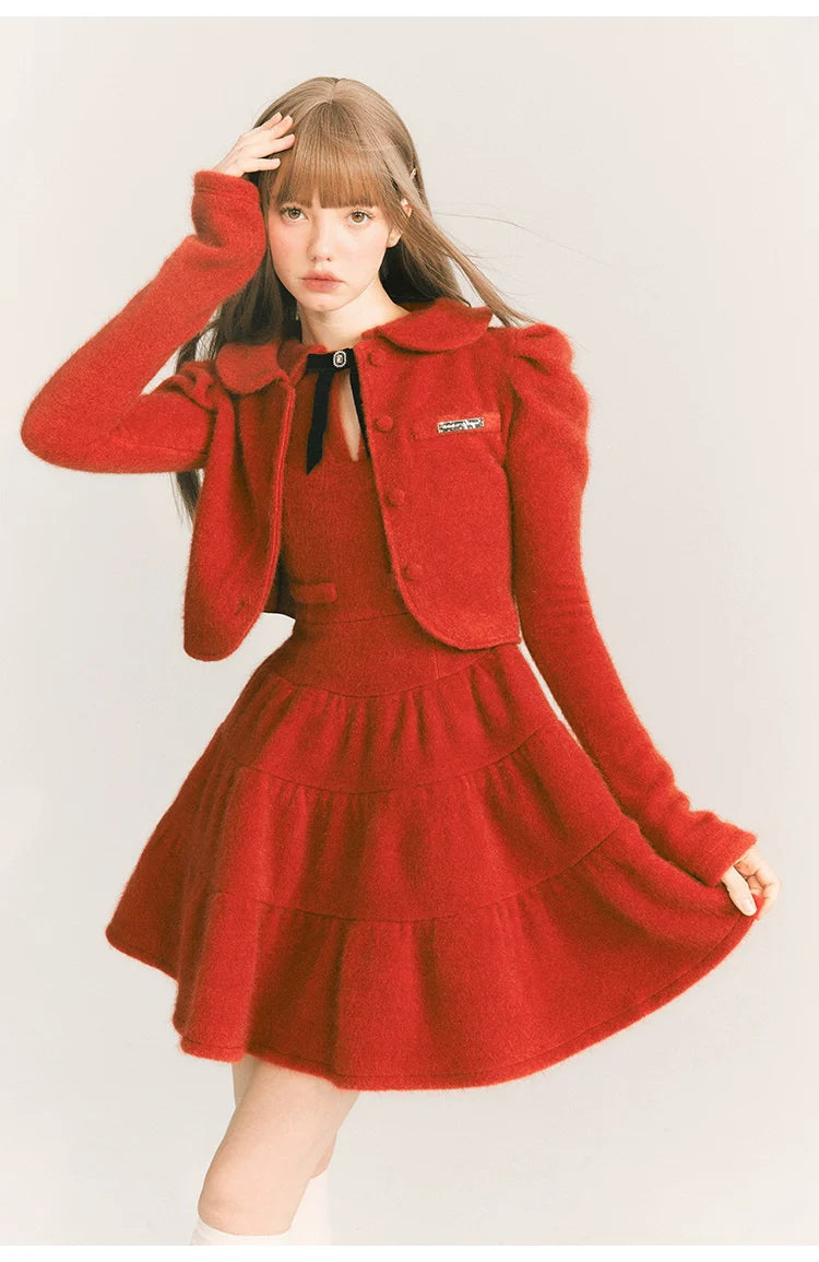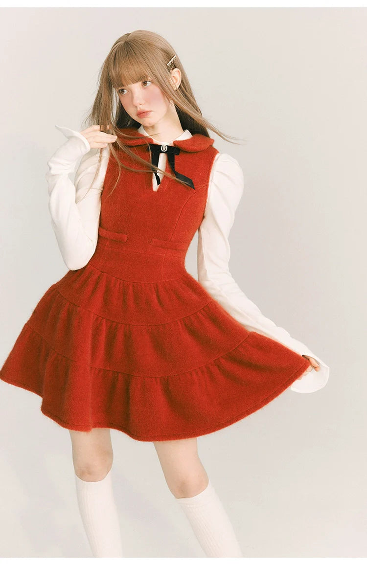 Celebrate the festive season with our Christmas Velvet Dress in Wine Red. This elegant piece features a charming doll collar and a flattering waist design. adding a touch of sophistication to your holiday wardrobe. Made from rich velvet. it embodies warmth and comfort. perfect for those cooler winter events. Its wine red color. reminiscent of hot red wine. adds a unique. festive flair that's sure to turn heads.