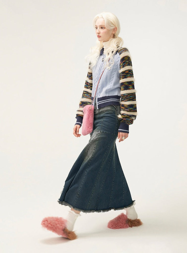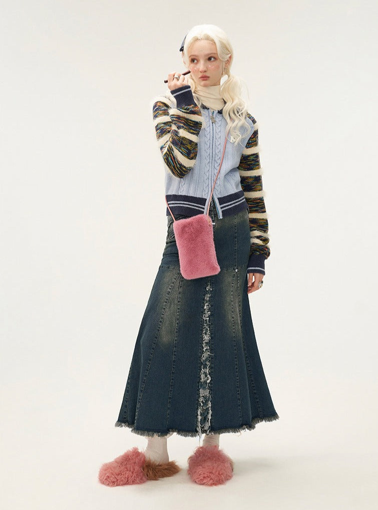 Versatile Striped Long Sleeve Knit Coat