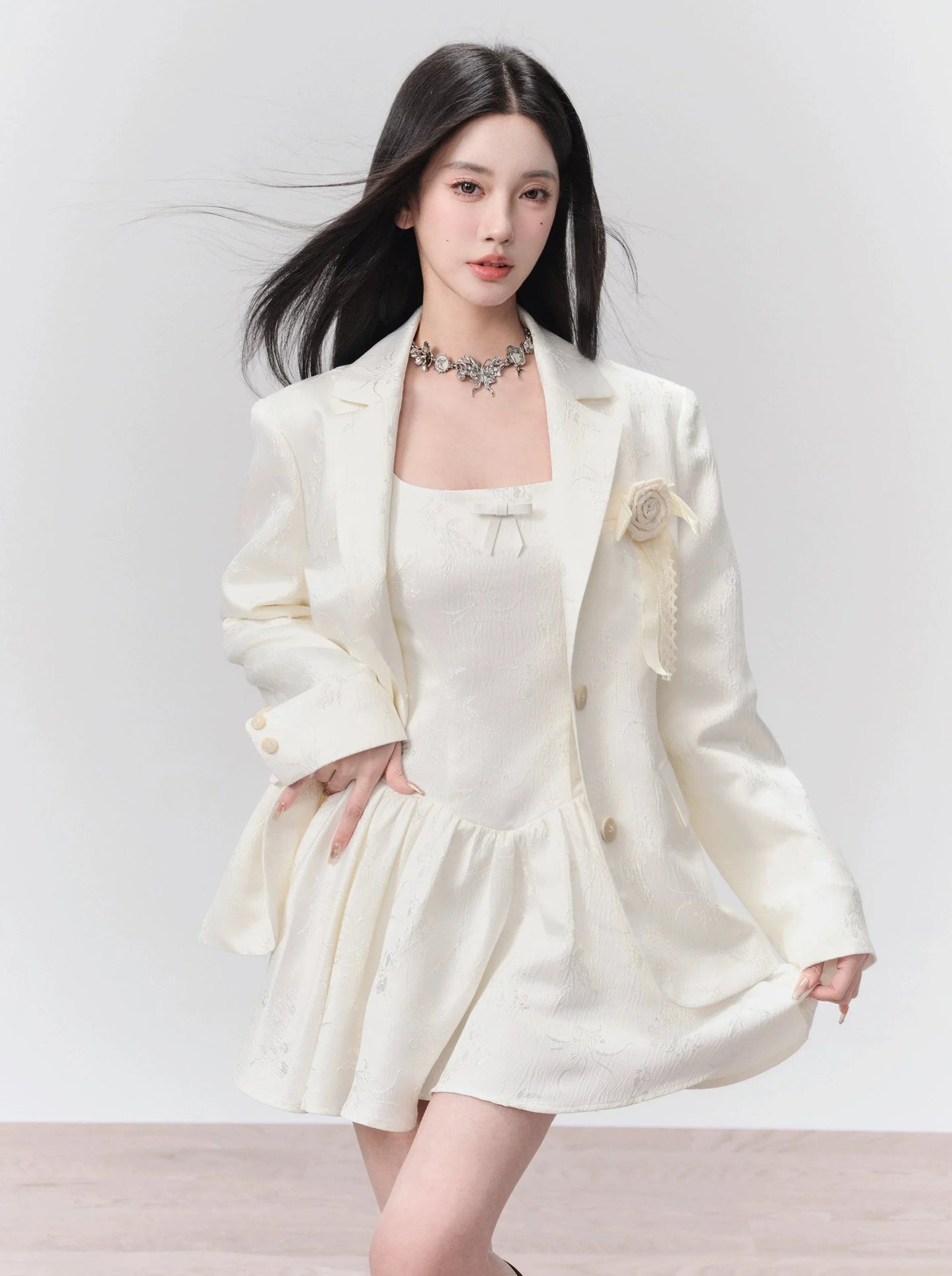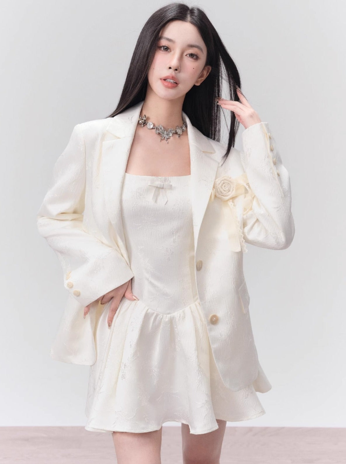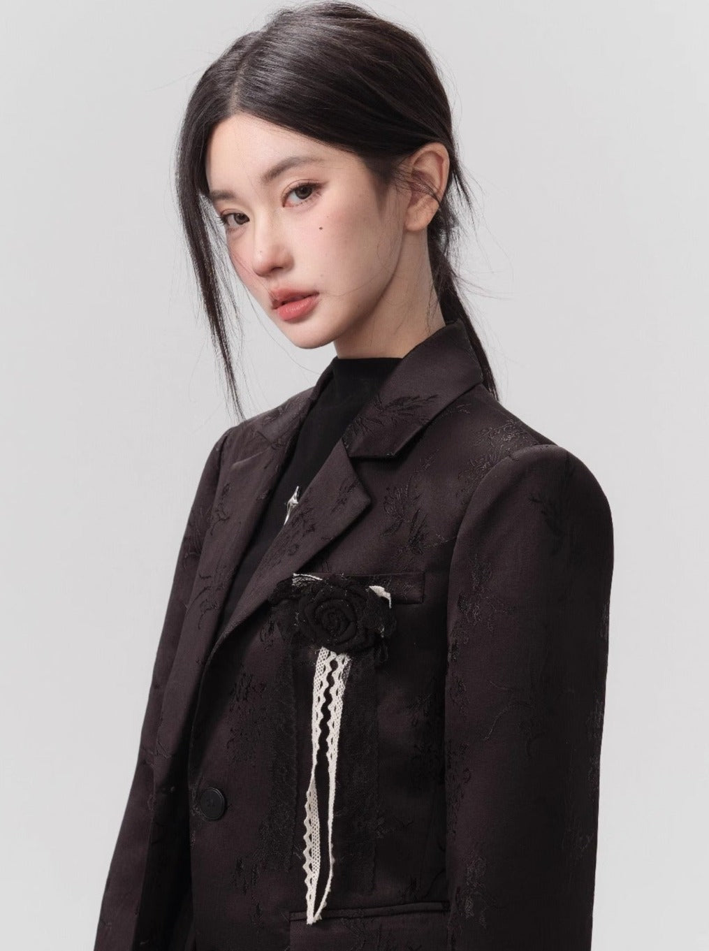 Versatile Tailored Blazer: Ivory with Floral Brooch or Black with Chain Accent