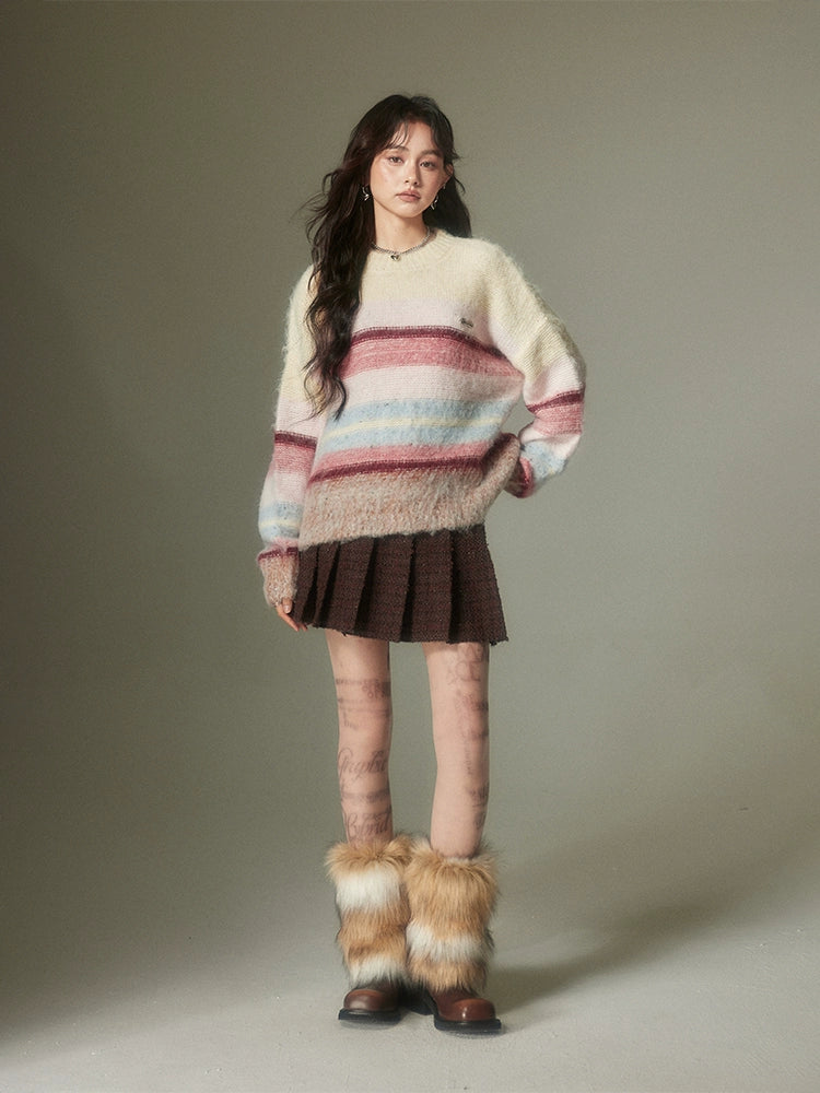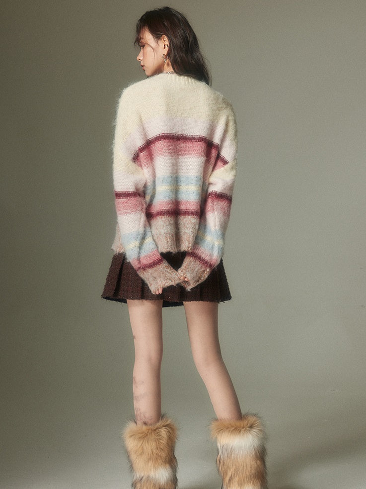 Vibrant Round Neck Sweater With Colorful Border