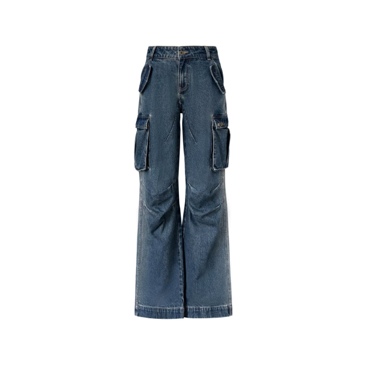 IFIK Retro Wash Denim Wide-Leg Cargo Pants Blue