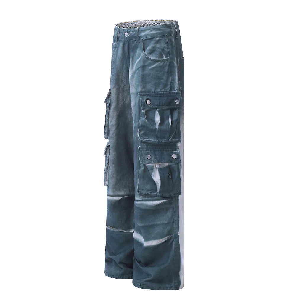 Stand out in these vintage distressed wide-leg denim pants. featuring bold panel stitching and a relaxed fit. Crafted from durable denim with a high-waisted design. these pants offer both style and comfort for a modern. laid-back look. Perfect for any casual outfit.