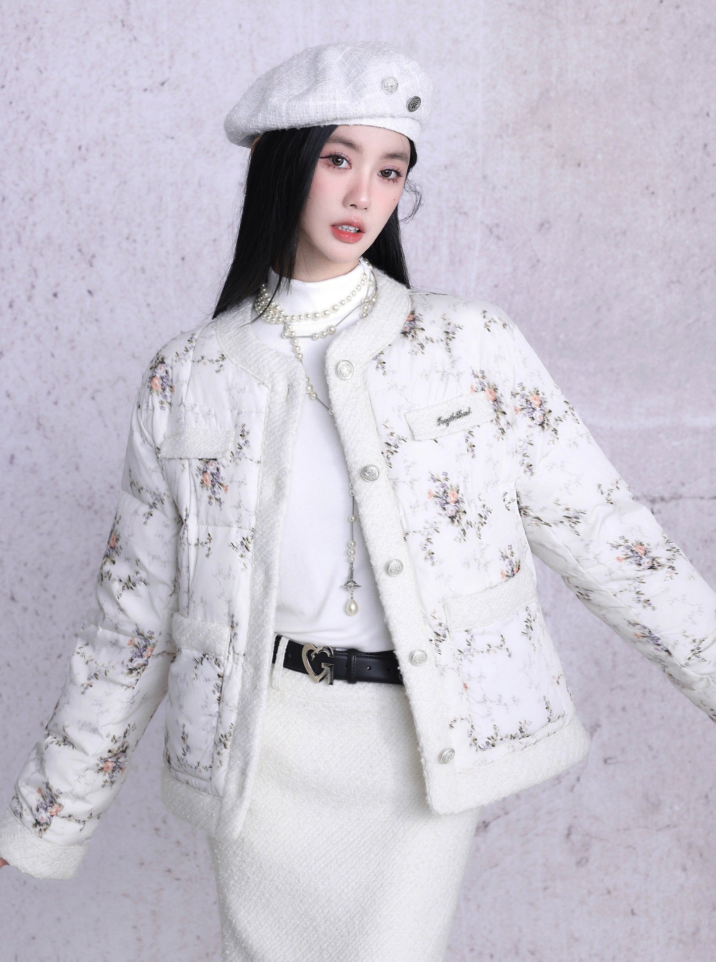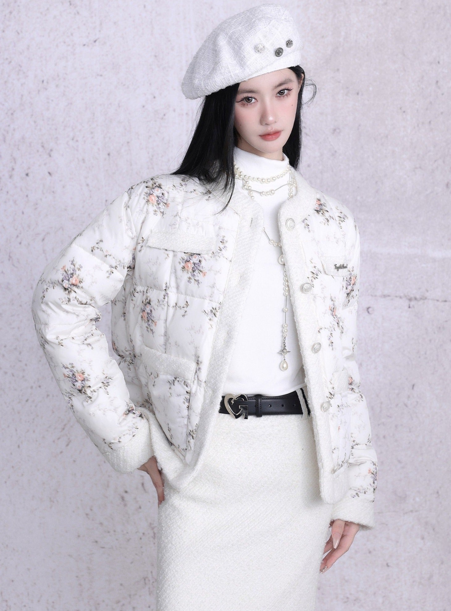 Vintage Floral Quilted Puffer Jacket - Romantic Spring Outerwear