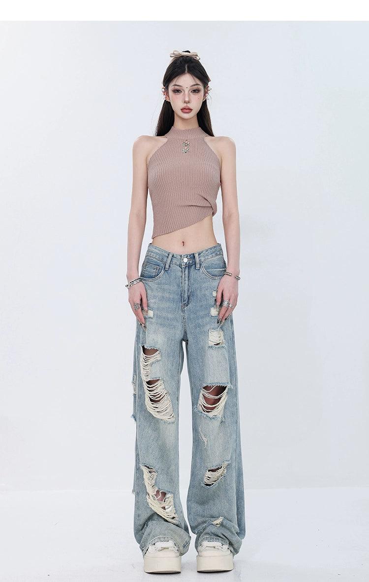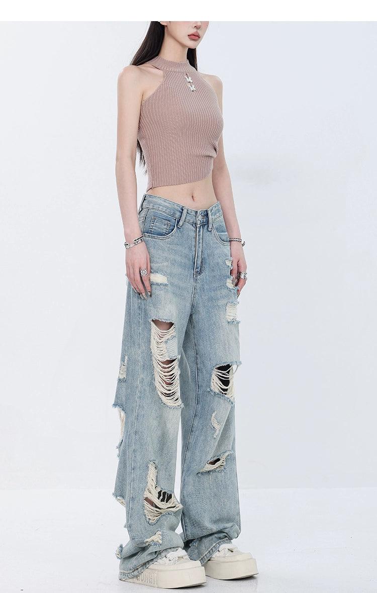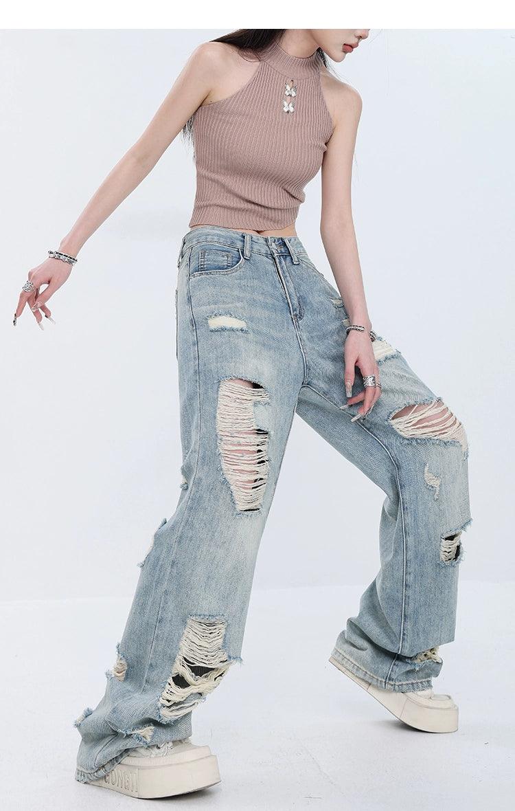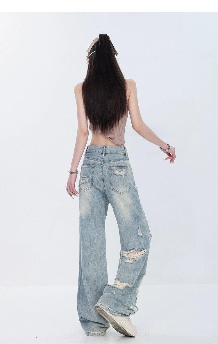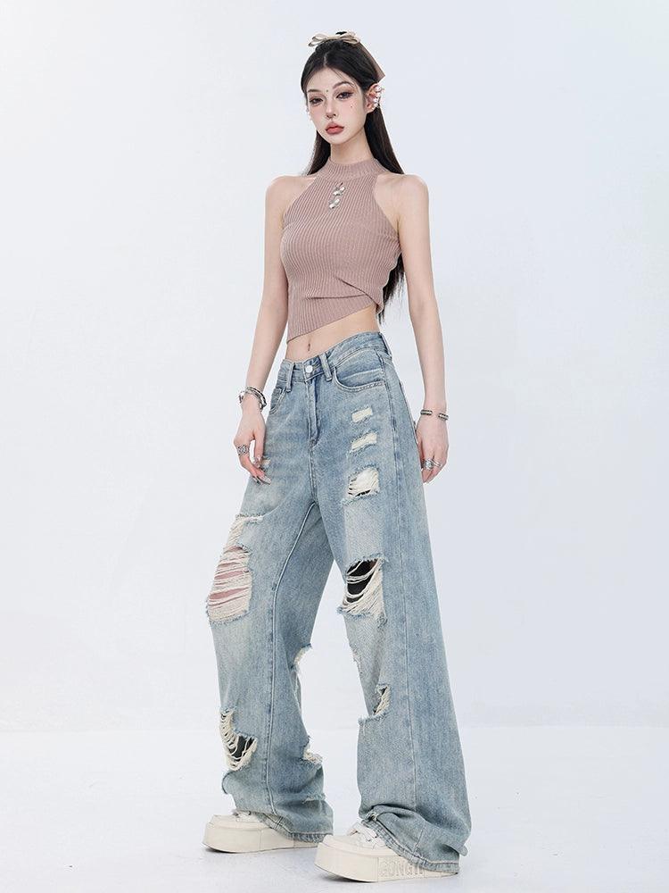 Channel your inner rebel with our Vintage Grunge Wide-Leg Jeans. These edgy denim pants feature distressed detailing and a relaxed wide-leg fit. embodying retro grunge with a modern twist. The high-waist design flatters your figure. while premium fabric ensures durability and comfort. Versatile and easy to care for. these jeans pair effortlessly with various tops to create bold. fashion-forward looks.