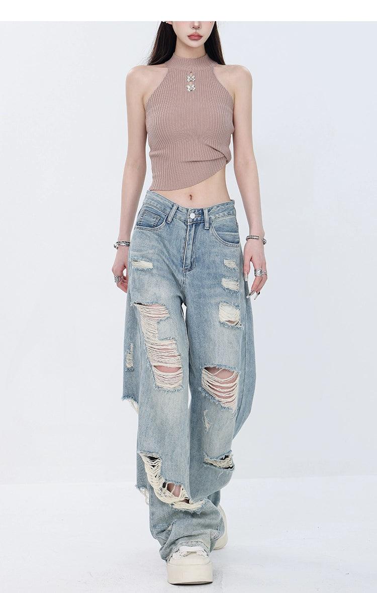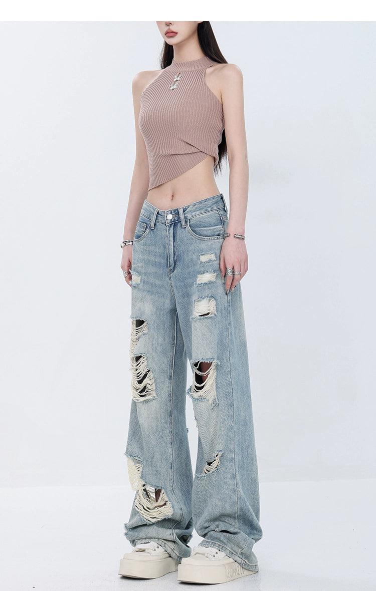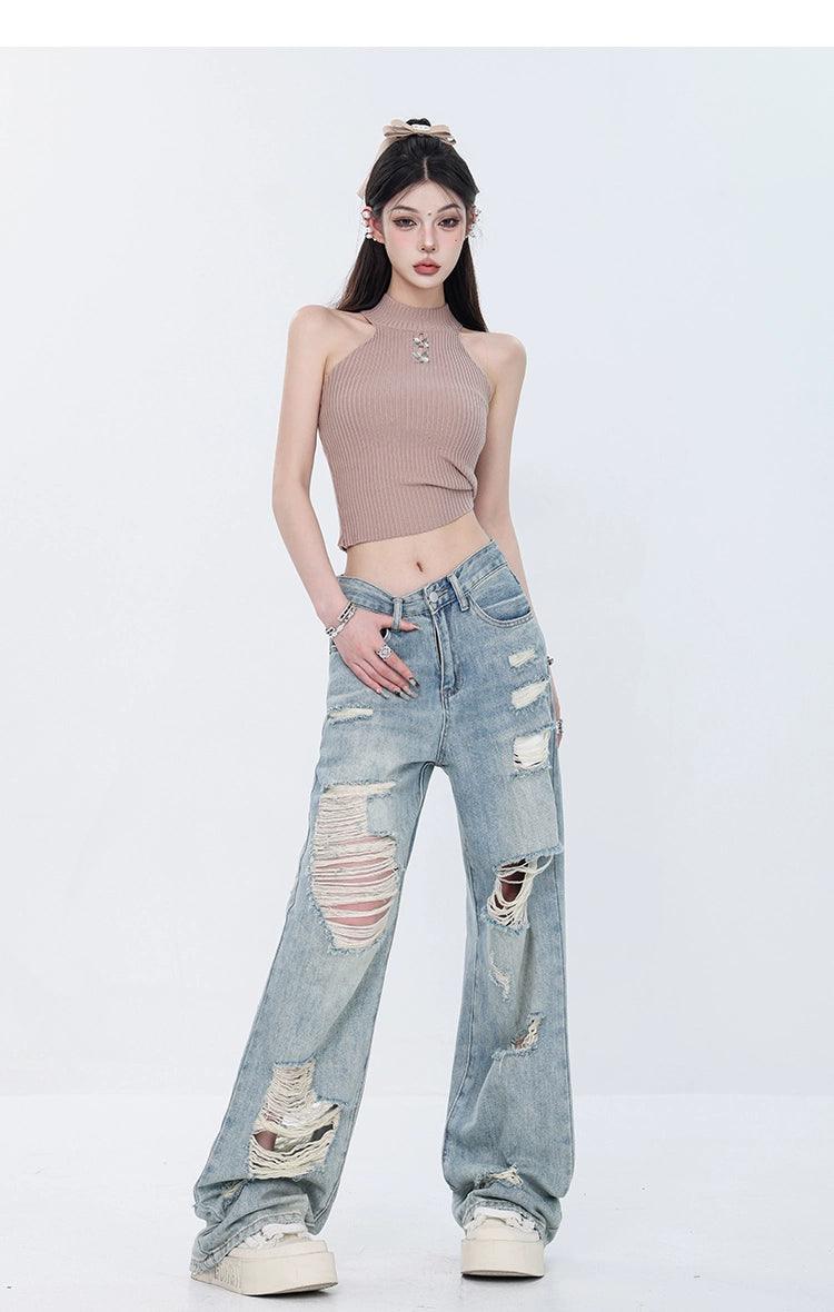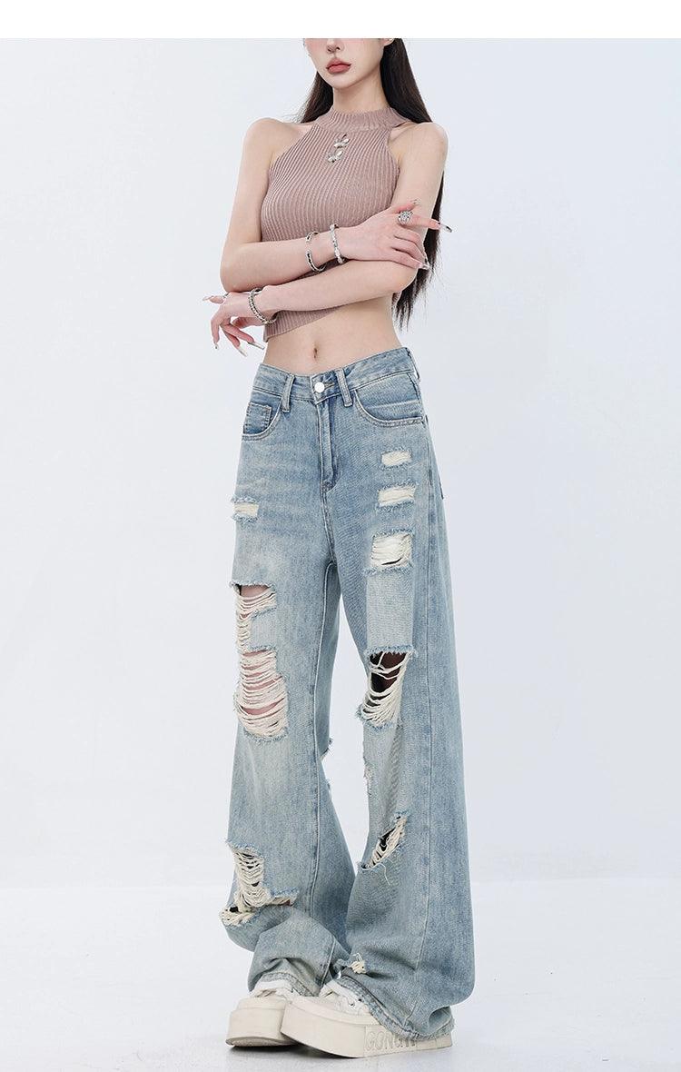 Channel your inner rebel with our Vintage Grunge Wide-Leg Jeans. These edgy denim pants feature distressed detailing and a relaxed wide-leg fit. embodying retro grunge with a modern twist. The high-waist design flatters your figure. while premium fabric ensures durability and comfort. Versatile and easy to care for. these jeans pair effortlessly with various tops to create bold. fashion-forward looks.
