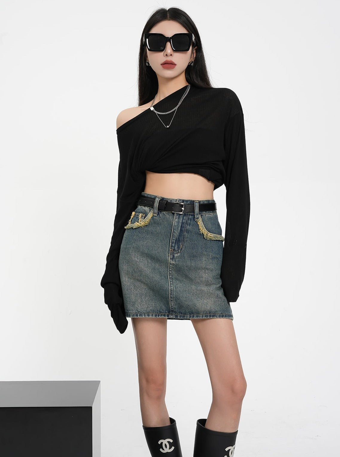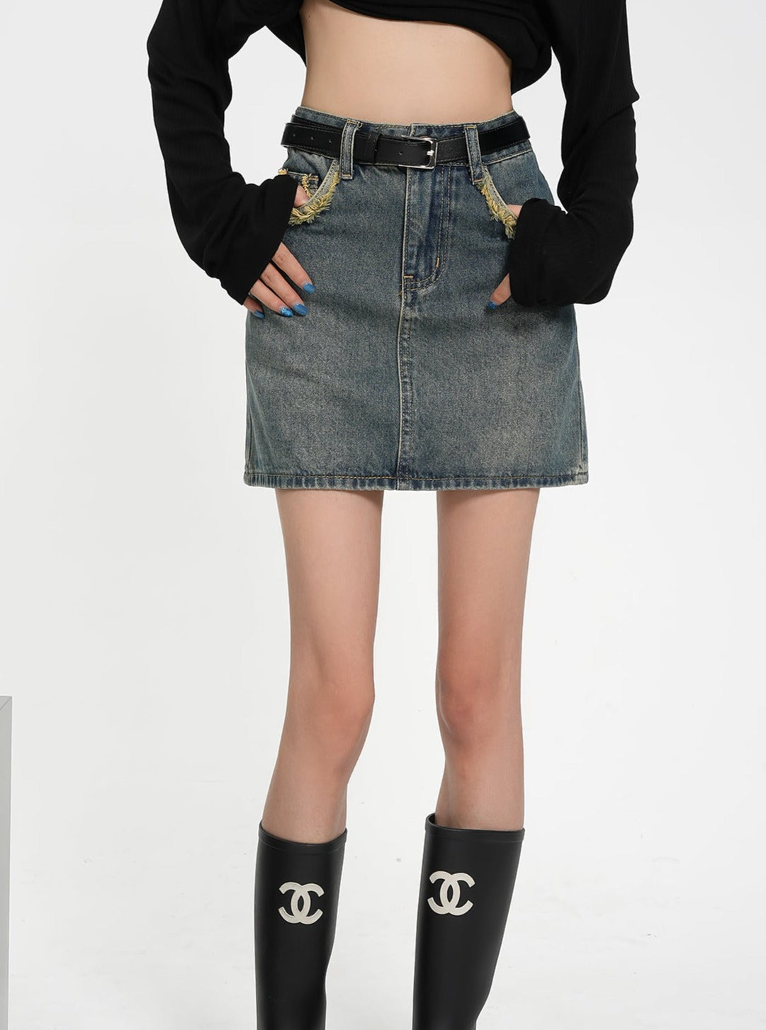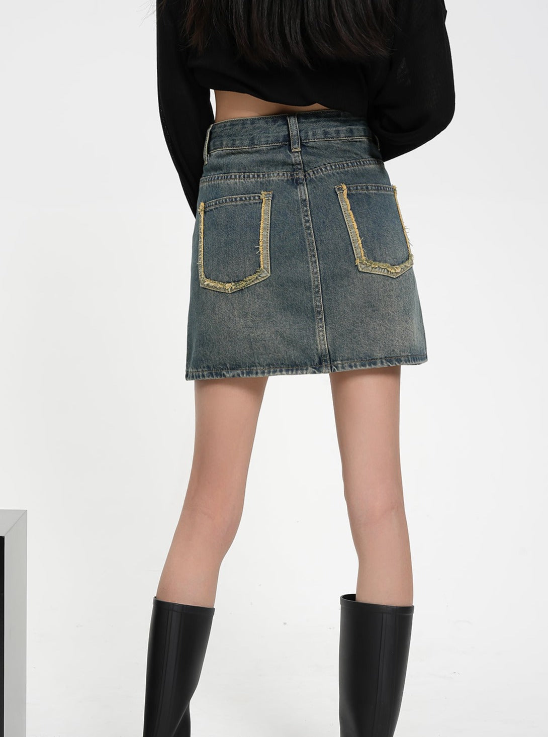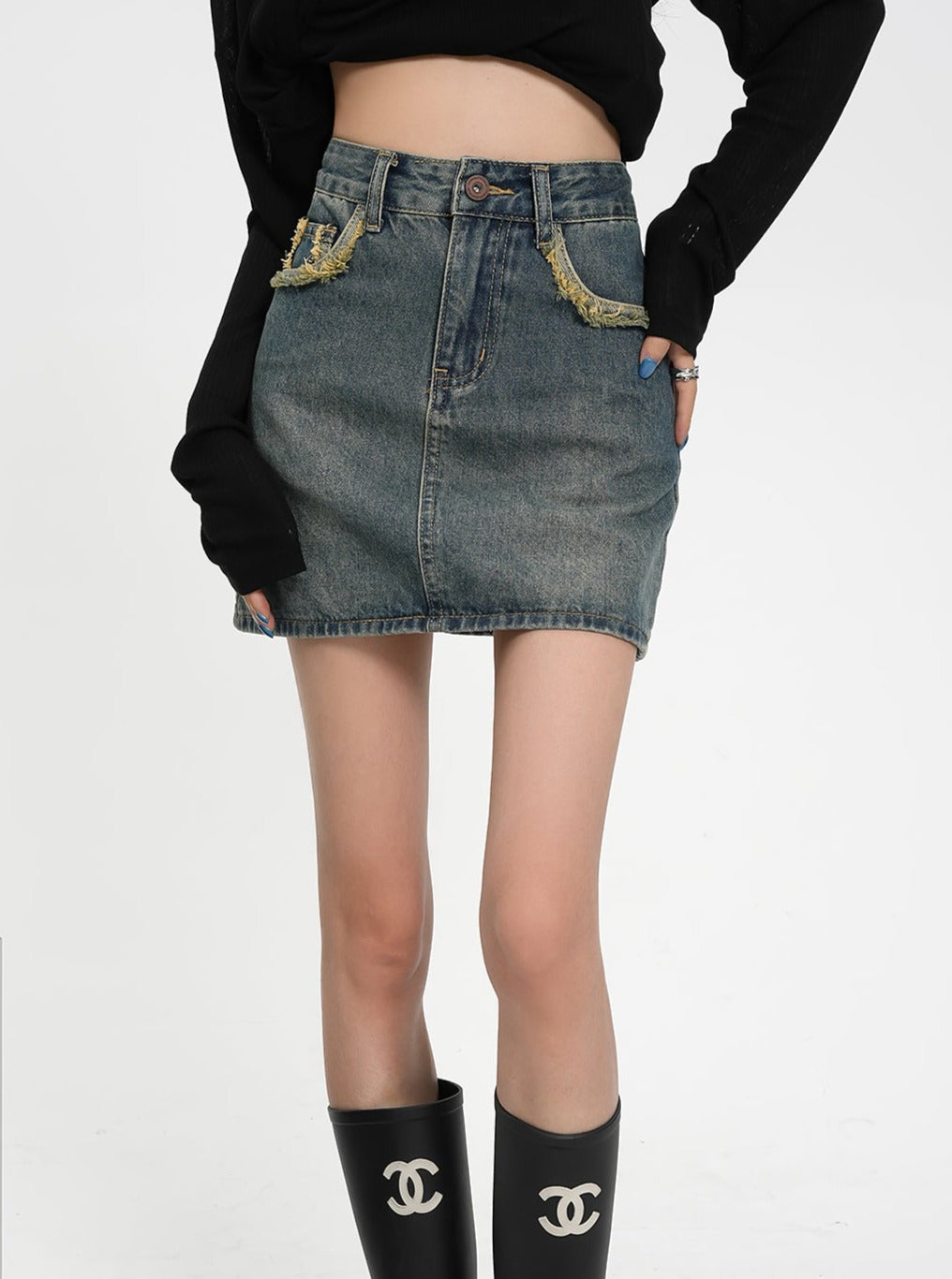 Upgrade your wardrobe with our Vintage-Inspired Denim Mini Skirt! This two-tone patchwork jean skirt with a raw hem brings a touch of nostalgia to your modern style. Made from high-quality denim. it offers both durability and comfort. Perfect for a casual day out or dressed up for a night on the town.