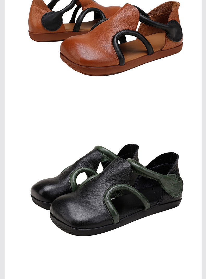 Vintage Niche Leather Flat Sandals