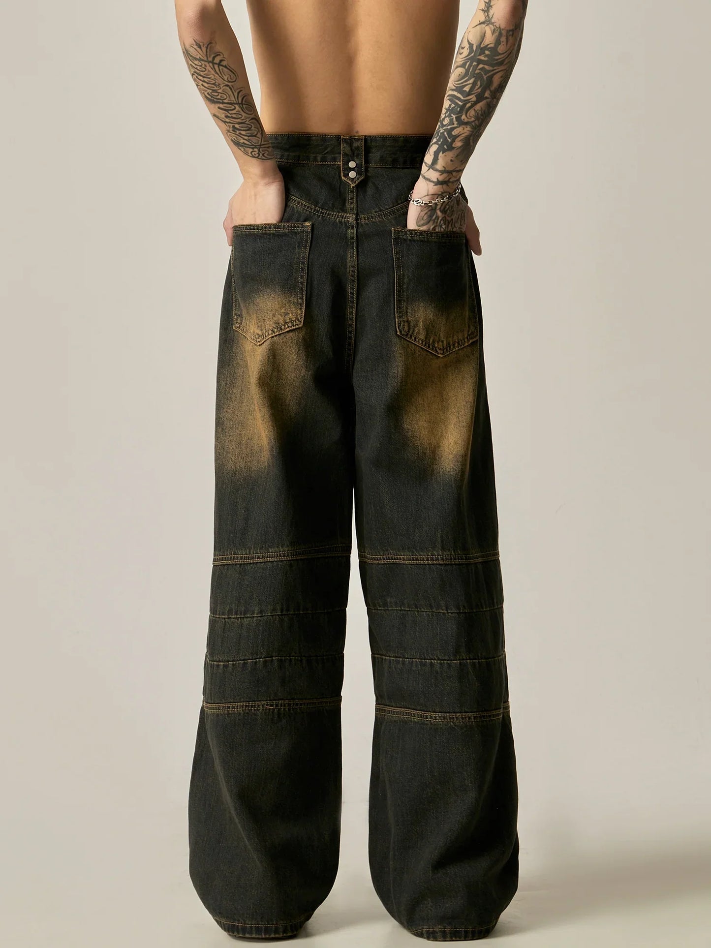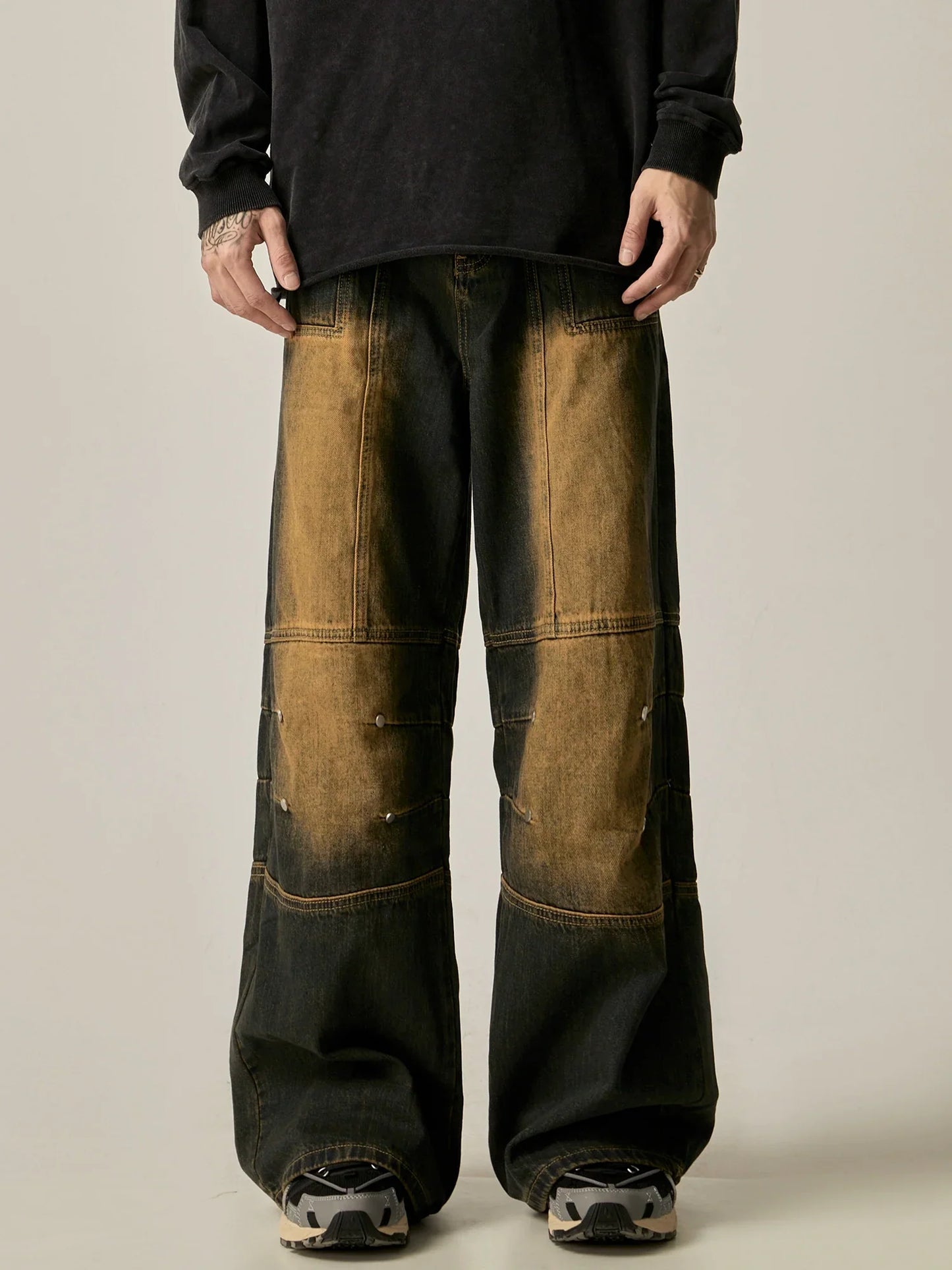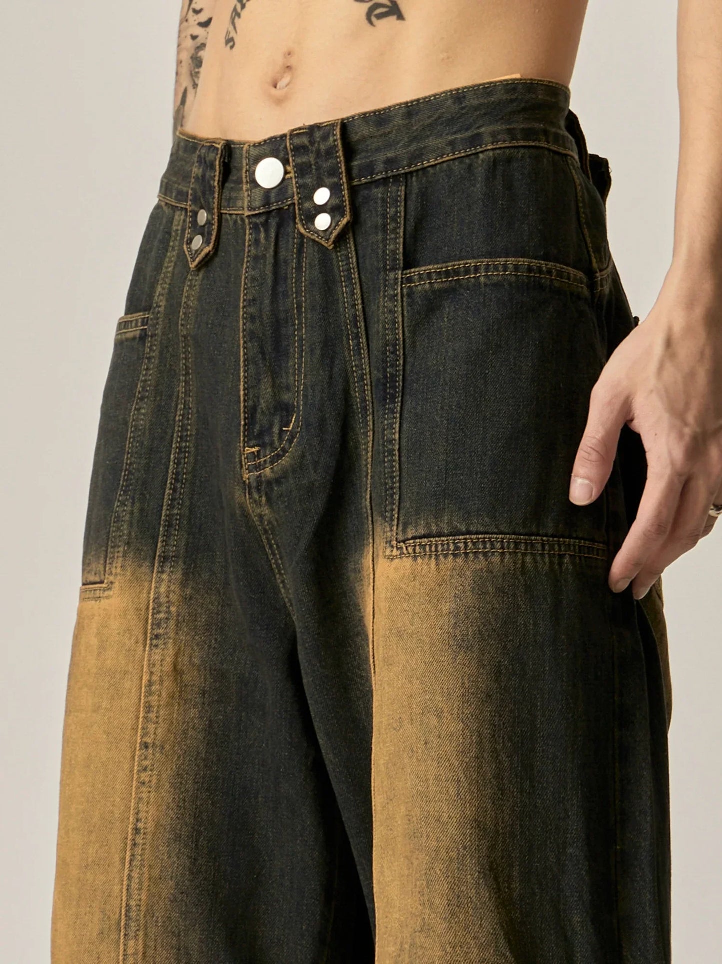 These Vintage Ombre Wide-Leg Carpenter Jeans offer a unique blend of style and functionality. With a vintage ombre design and wide-leg cut. they provide a trendy look while also offering comfort and flexibility. Made with high-quality materials. these jeans are perfect for any fashion-forward individual. Upgrade your wardrobe with these stylish and versatile jeans.