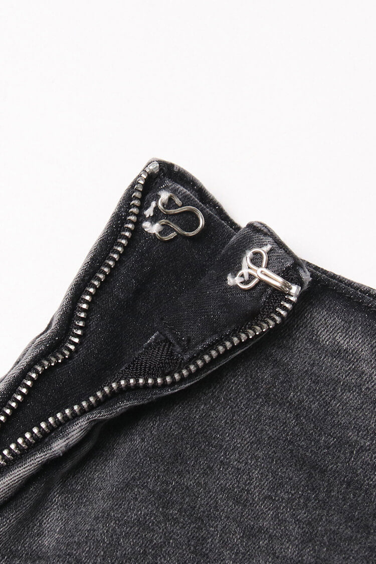 Our sexy micro jean skorts are sure to garner compliments effortlessly. This creatively designed short denim skort features a unique inverted design where the "belt" serves as the hem. adding an intriguing twist to the classic skort. With high-rise fit. this denim outfit accentuates women's curves while elongating long legs in a mini length. The side zipper with hook & eye closure ensures a secure fit. while distressed accents add edgy street style. Crafted from a comfortable cotton blend. these spicy denim skorts in our boutique are perfect for all-day wear.