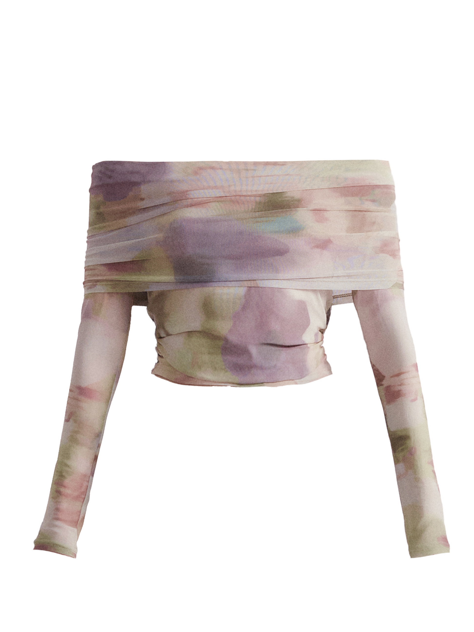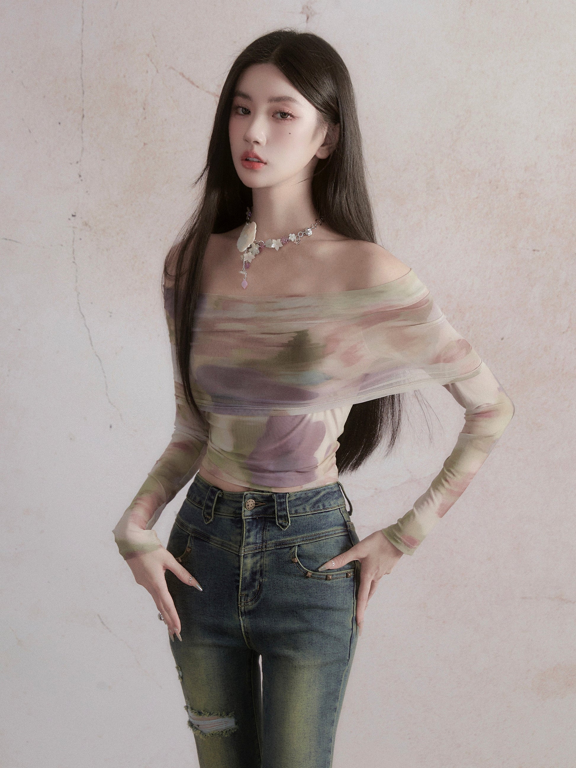 Experience the dreamy elegance of our Watercolor Dream Off-Shoulder Crop Top. Featuring a beautiful watercolor design and an off-shoulder style. this top will make a statement wherever you go. Perfect for any occasion. this top is both stylish and comfortable. Dress it up or down. and let your unique and sophisticated style shine.