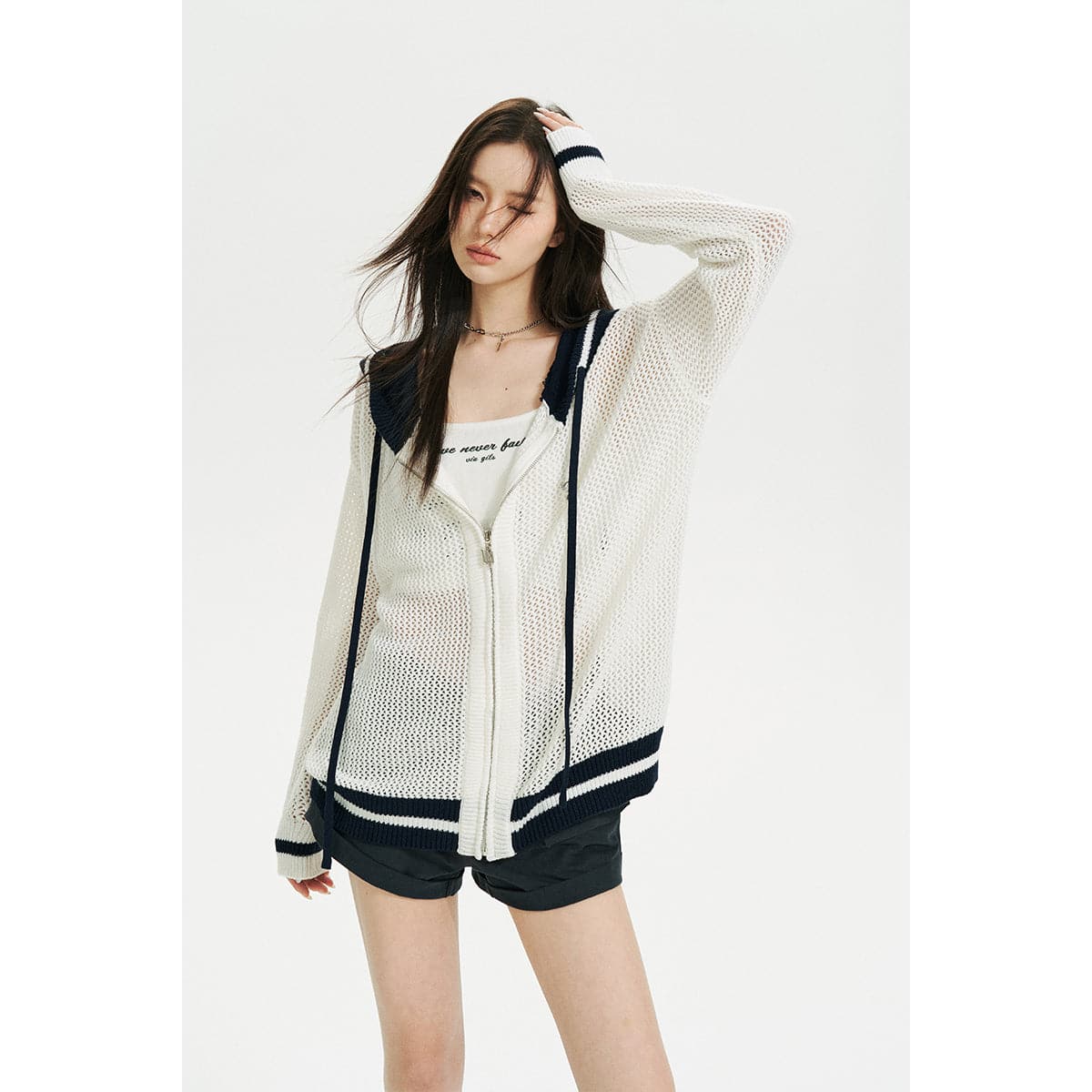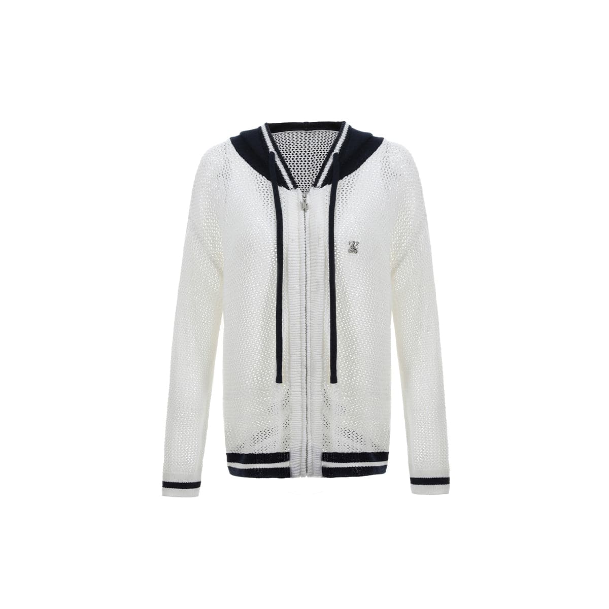 Via Pitti Color Blocked Knit Zip Hoddie White