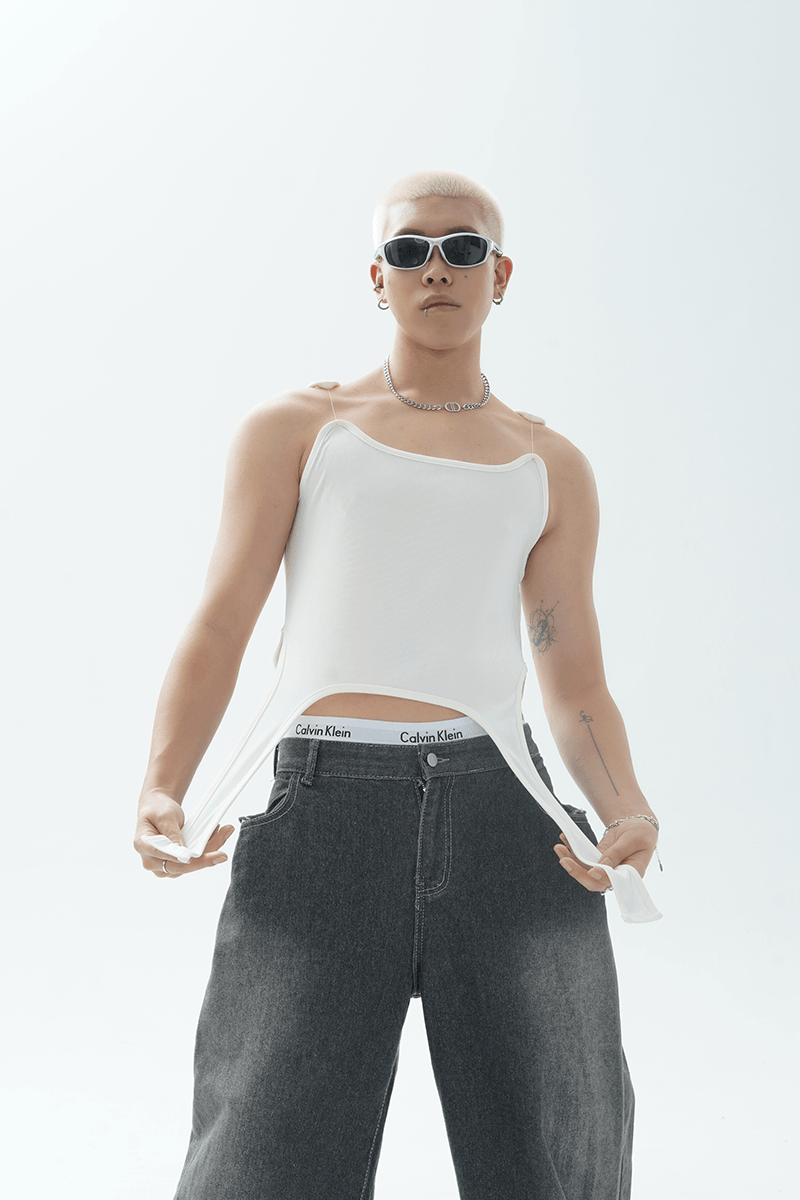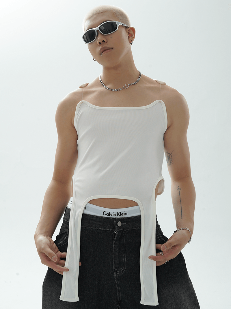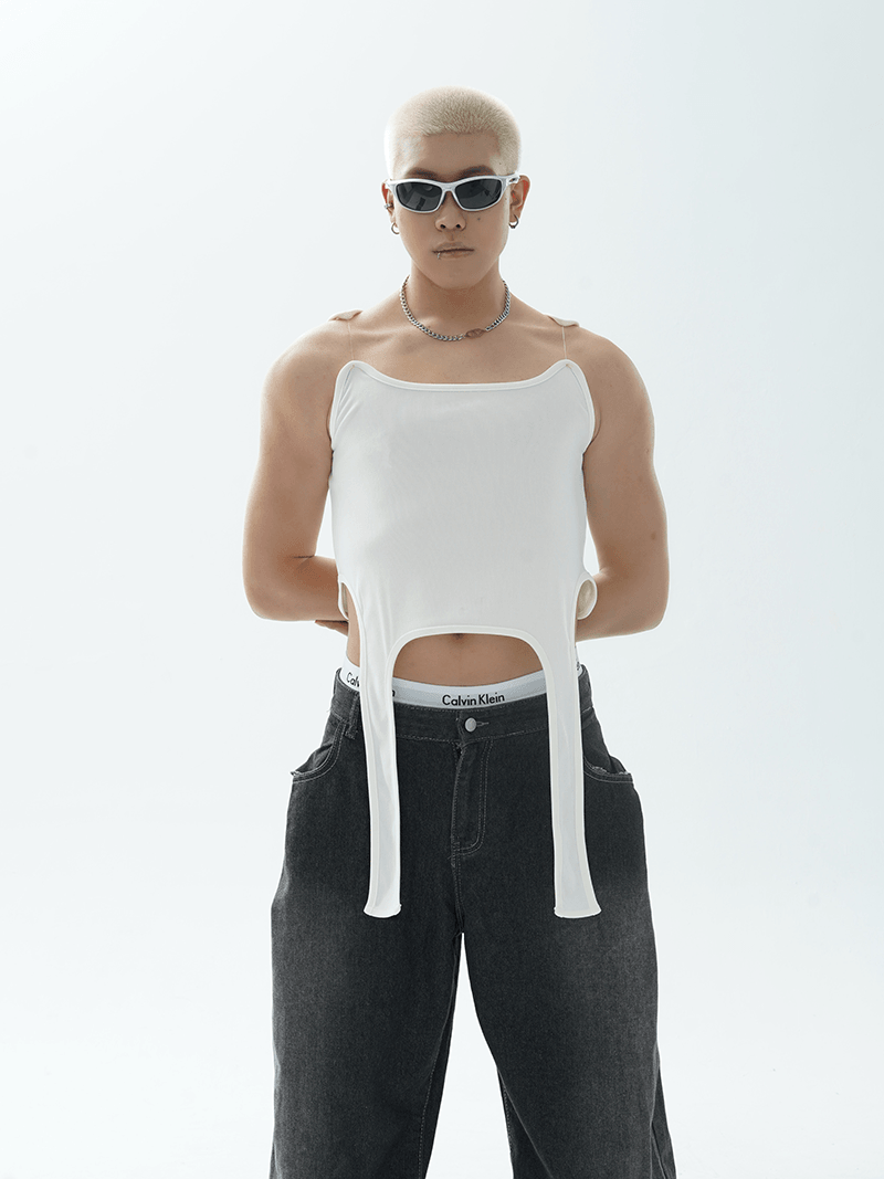 The White Cut-Out Crop Tank Top features a sleek and modern design with stylish cut-out details that add an edgy and fashionable touch. Made from high-quality. breathable fabric. this crop tank top ensures comfort and ease of movement. perfect for warm weather.Â