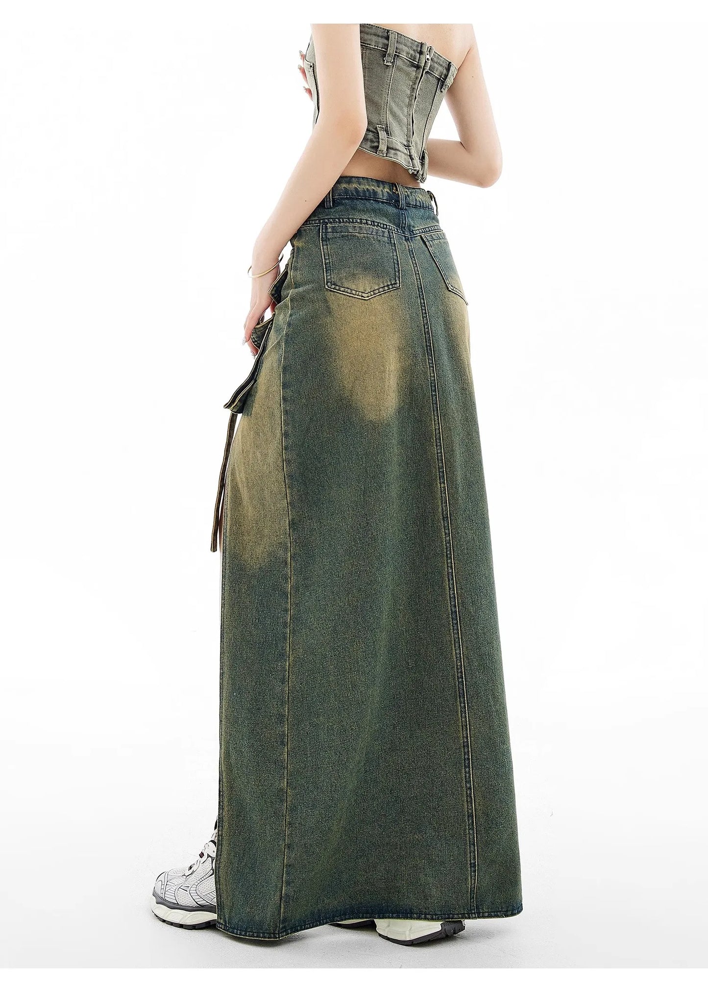 - Add some details to your look with this chic Women's Denim Vintage Skirt!