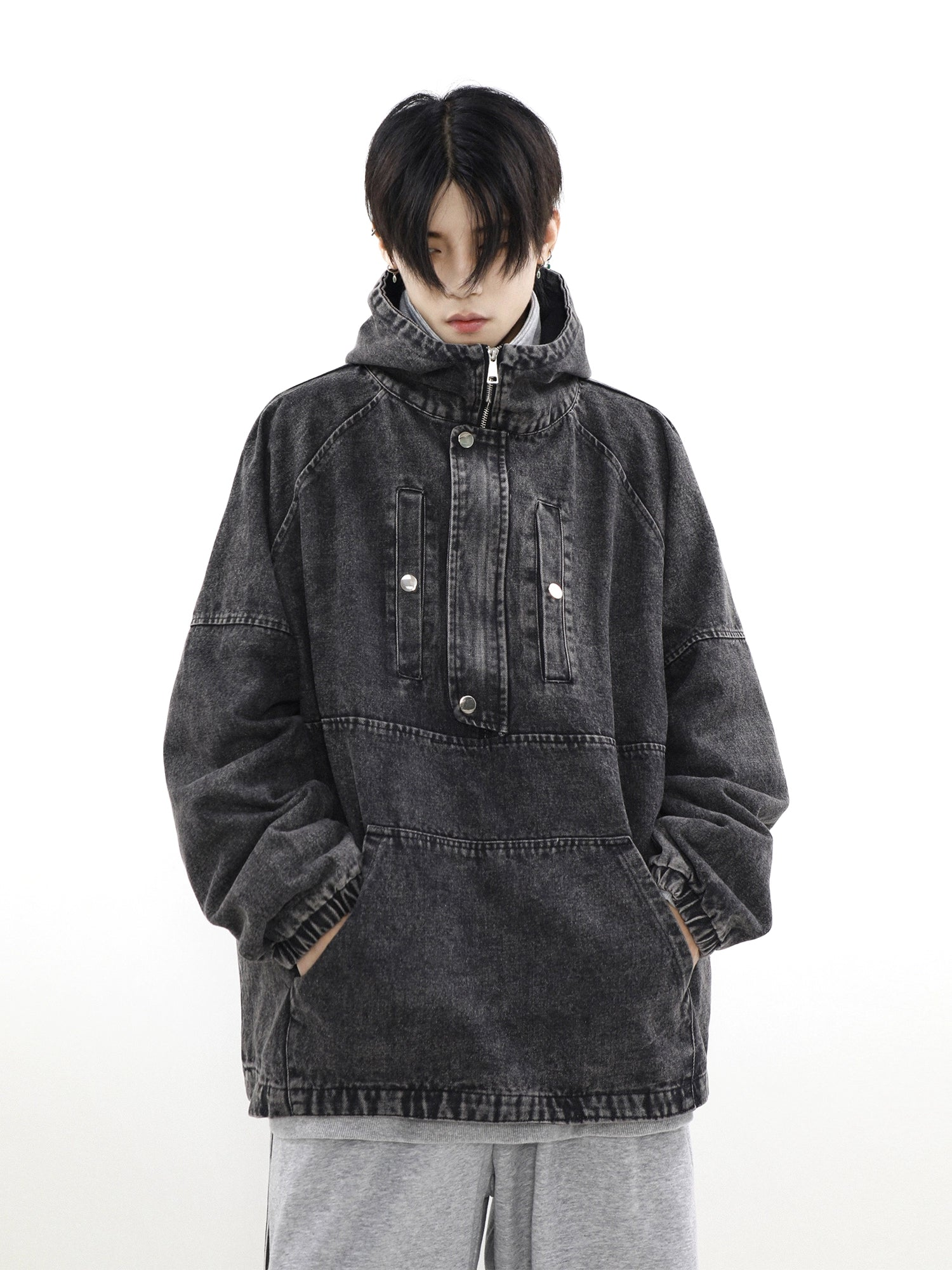 Unleash your bold and edgy side with our Zip-Front Denim Oversize Hoodie! The unique combination of a zip-front design with a denim fabric creates a stylish and comfortable statement piece. Perfect for those looking to make a statement while staying cozy and on-trend.